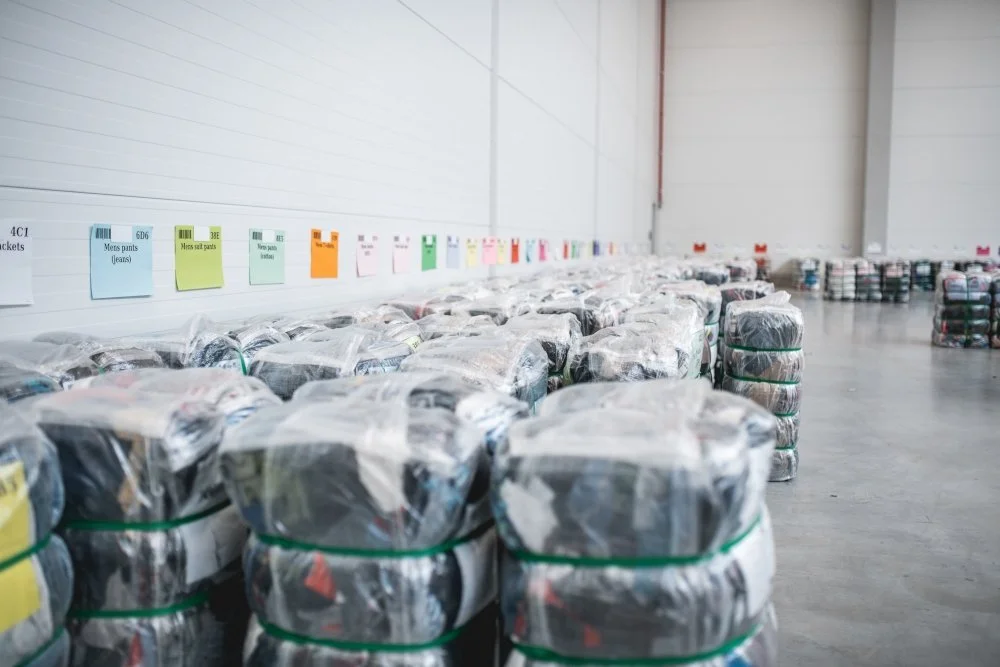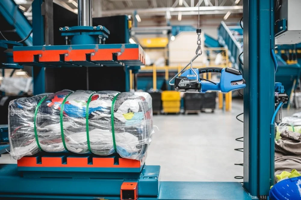 The goods are sorted by an experienced team and undergo quality control. They are then pressed into standardized bales weighing 100 lbs (45 kg), labeled with the assortment name, weight, and barcode. This form of packaging simplifies inventory control and further distribution.